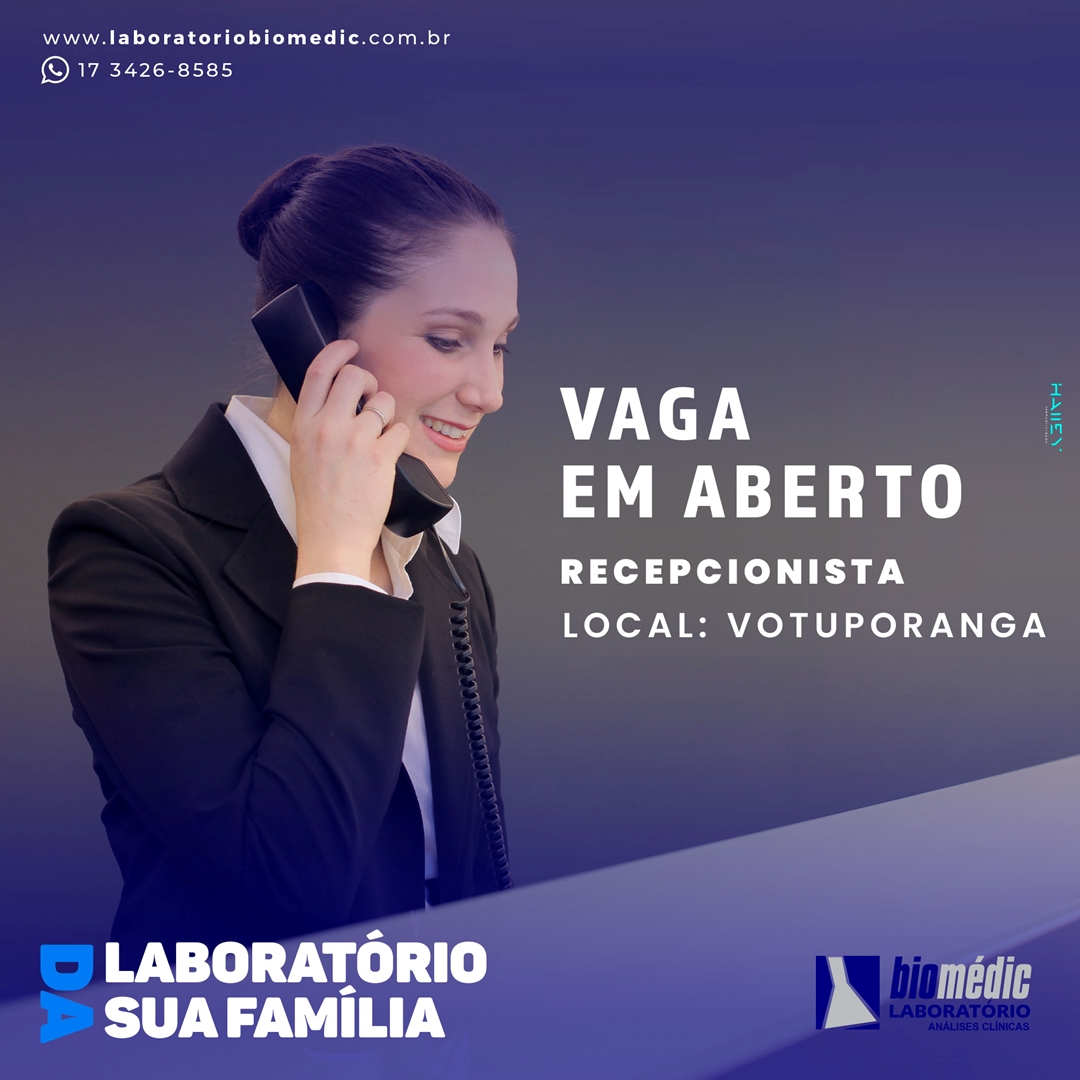 Vaga aberto para recepcionista.