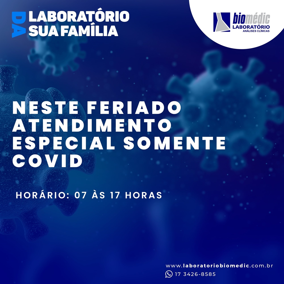 Neste feriado atendimento especial somente Covid