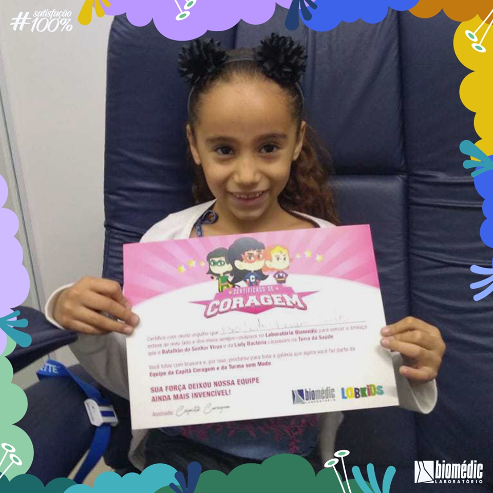 Olha só que legal! Toda criança que faz seus exames laboratoriais aqui na Biomédic recebe um Certificado de Coragem por enfrentar esse momento como um verdadeiro herói. Traga seu pequenino aqui e coloque um sorrisão no rosto dele também!